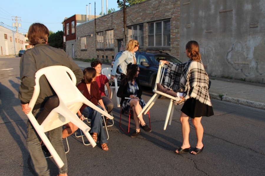 The Stopping workshop gathers participants from various backgrounds and disciplines. The sessions are held in August on an outdoor urban lot set up for this purpose. The project concludes with a public conversation around reflections developed and interventions carried out by the participants during the action workshop, followed by a screening on the topic of Stopping.