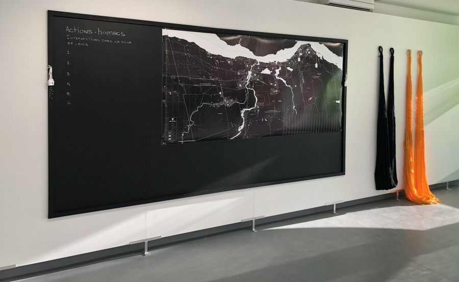 Du 13 mai au 12 juin, sept hamacs aux couleurs vives présents dans la galerie seront mis à la disposition du public. L’artiste les rend accessibles aux individus pour une durée limitée afin qu’elles et ils puissent les emprunter et les déployer sur le territoire urbain ou rural de Lévis. Il est demandé aux volontaires de documenter leur « occupation » de l’espace par la photographie. Ces interventions visent à mettre en lumière et susciter un regard et une réflexion différents sur le lieu investi, en résonance avec le propos de l’exposition et les enjeux qu’elle déploie, participant ainsi à la construction de nouveaux imaginaires collectifs.